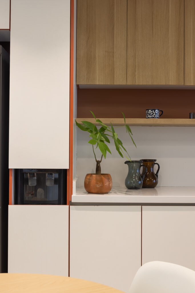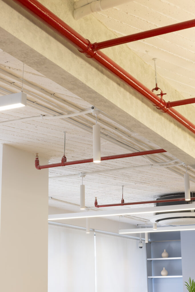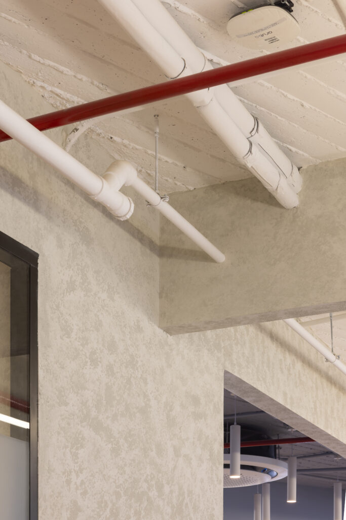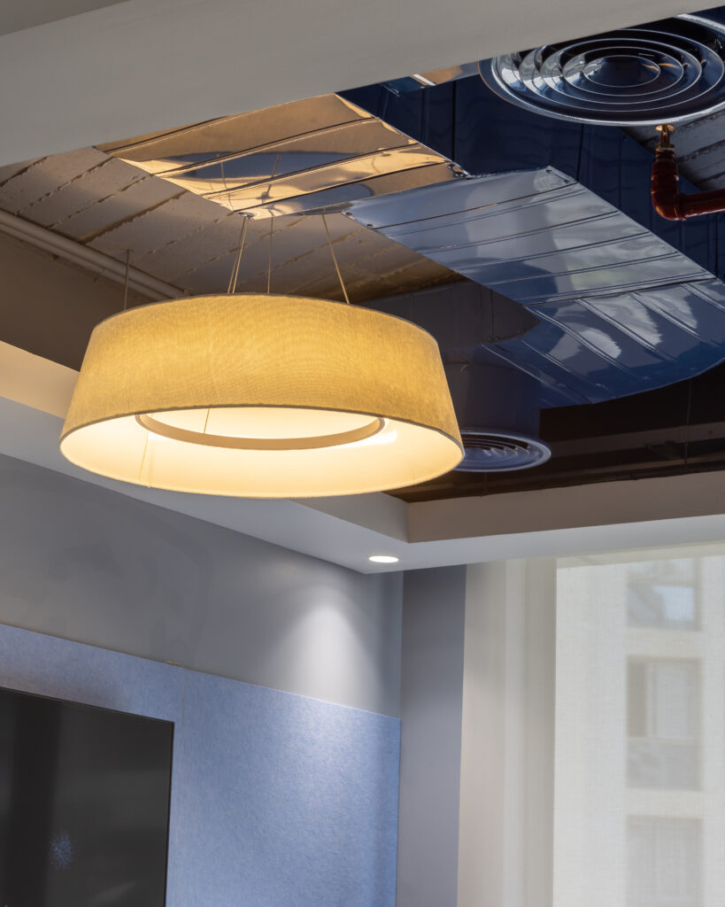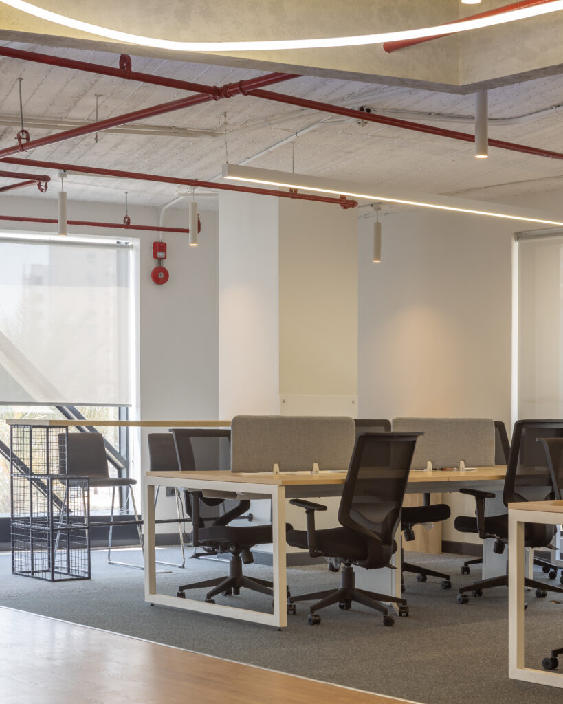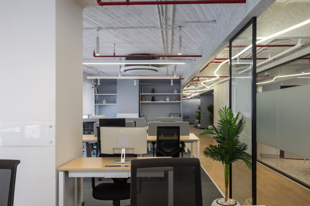 At the center of the office, a custom lounge area anchors the environment. With tailored seating, integrated benches, and subtle branding, it strikes the balance between professionalism and comfort. This thoughtful spatial design supports team productivity, corporate culture, and seamless client interaction.